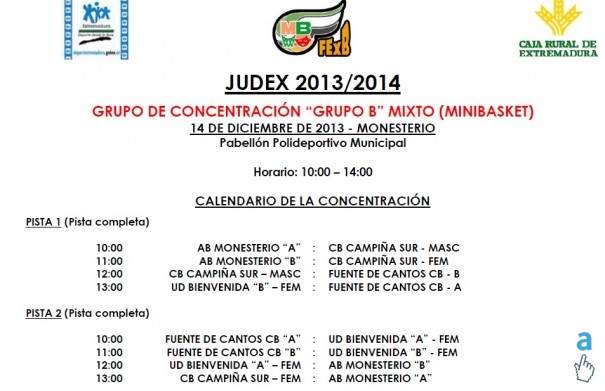Los más pequeños del club, entrenados por Enrique Freire, disfrutarán por fin de su primera concentración de minibásket JÚDEX organizada por la Federación Extremeña de Baloncesto. Será en Monesterio, en el Pabellón Municipal.