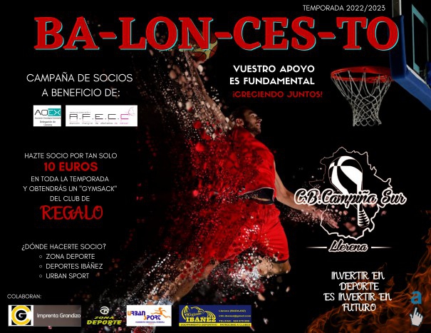 Desde hoy lunes 10 de octubre de 2022, queda abierta oficialmente la CAMPAÑA DE SOCIOS del C.B. CAMPIÑA SUR DE LLERENA TEMPORADA 2022/23, que tendrá vigencia toda la temporada.
