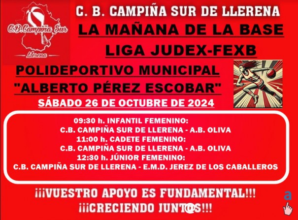 El próximo fin de semana, segunda jornada para nuestros equipos de la BASE que compiten, en JUDEX-FEXB. Nuestros equipos MASCULINOS INFANTIL y  CADETE (el JÚNIOR descansa),  jugarán la mañana del sábado en la pista del B.T.B. ALMENDRALEJO y la tarde del viernes en  la pista del E.D.M. VILLAFRANCA, respectivamente.  Nuestros equipos FEMENINOS INFANTIL, CADETE y JÚNIOR FEMENINO, juegan la mañana del SÁBADO 26 DE OCTUBRE DE 2024 en el "ALBERTO PÉREZ".