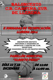 El C.B. CAMPIÑA SUR DE LLERENA, en colaboración con el Excelentísimo Ayuntamiento de Llerena y su Concejalía de Deportes, organiza las II JORNADAS DE TECNIFICACIÓN. Dichas...